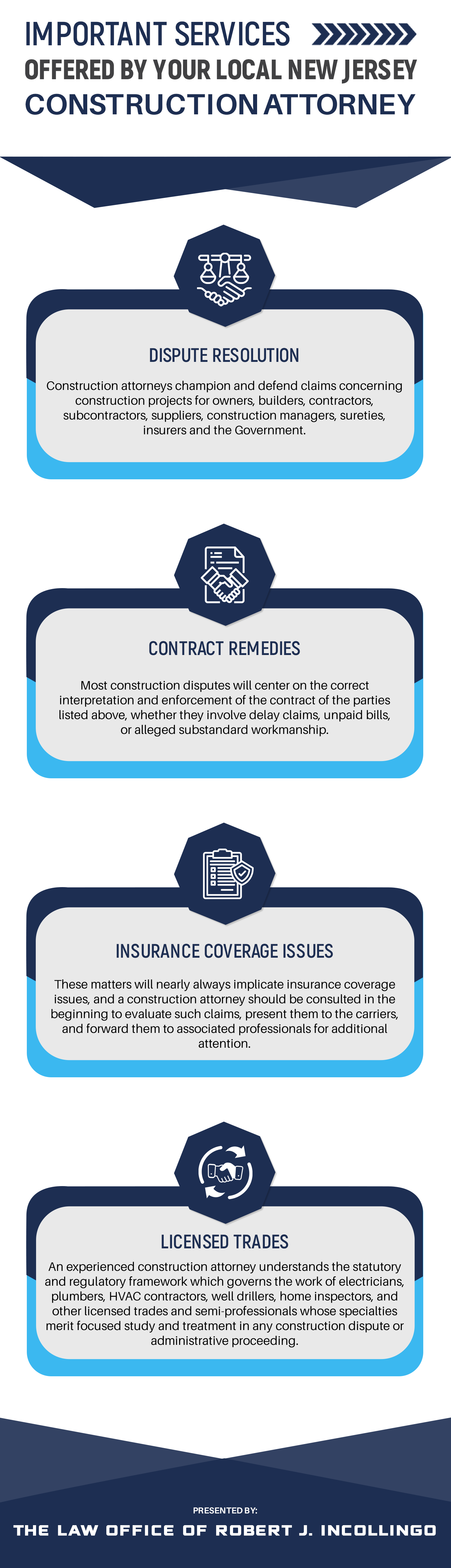 We provide essential services to our clients, like as Dispute resolution, contract remedies, Insurance coverage issues, licensed trades. We deliver our services in a cost-effective and time-efficient manner. Know more about us by visiting our website.